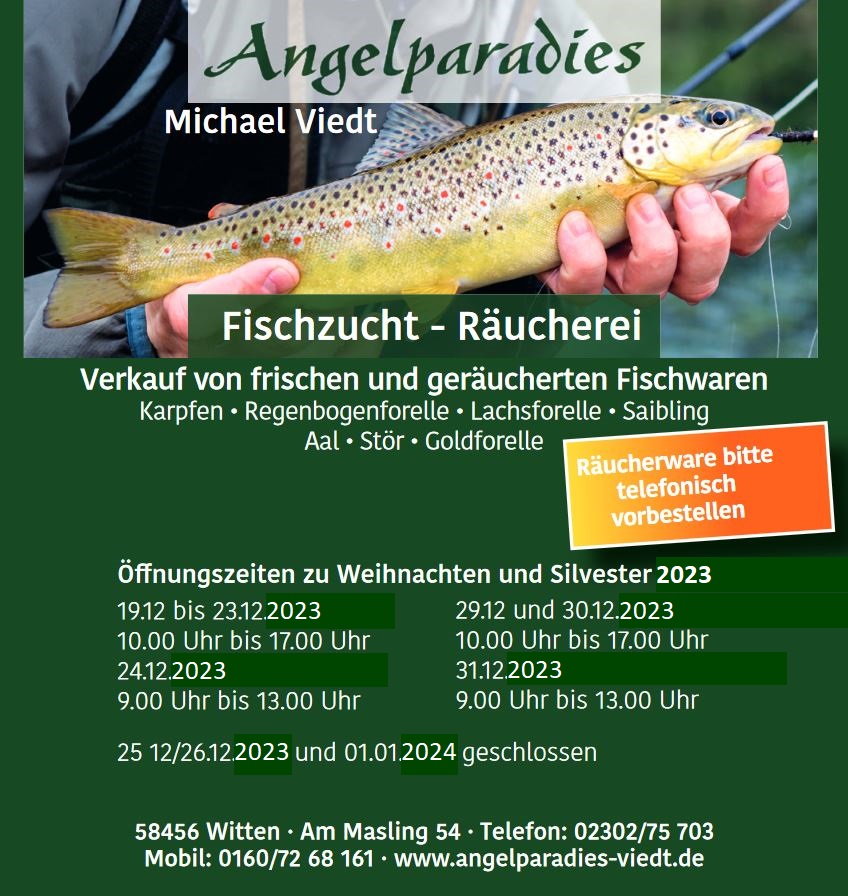 Unsere Öffnungszeiten des Fischverkaufs-Geschäft: